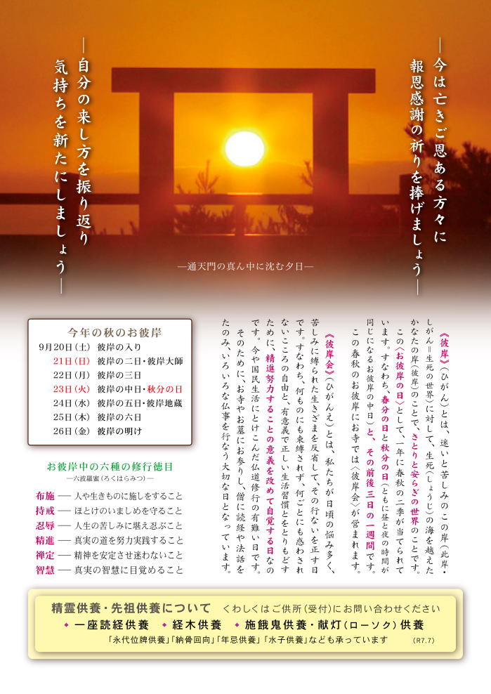◎令和7年 秋のお彼岸まいり![]() ![]() |