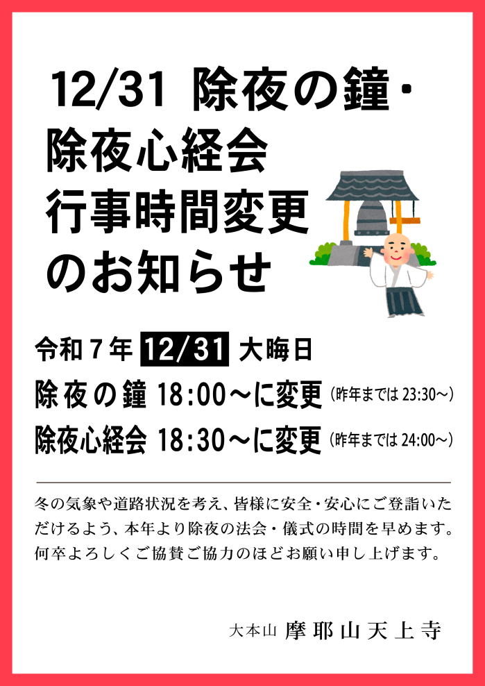 ◎令和6年 除夜の鐘・除夜心経会![]() |
