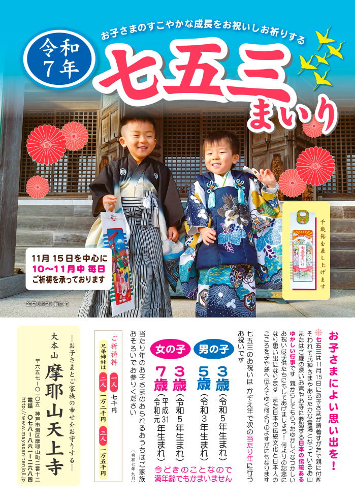 ◎令和7年 七五三まいり お気軽にお問い合わせください TEL 078-861-2684![]() ![]() |